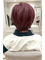 『ご希望のスタイル写真があればブックマークして頂きカウンセリングでご提示ください』動きのだせるショートウルフにダブルカラーでワインレッドに。軽くて丸くないスタイル。骨格、髪質の悩みを解消し綺麗なヘアスタイルを提供致します。