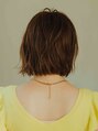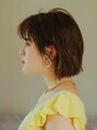 前下がりのボブスタイルです!前は重すぎないスタイルで後ろのぱっつん感がかわいいです^^♪前髪は軽めに作っていて爽やかで夏ぴったりです☆カラーは室内ではブラウンにみえますが光にあたるとオレンジ系です!!