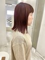 赤とピンクをミックスにしたベリーレッドカラー。前髪の短さとのバランスも可愛い!!!艶やかで透明感あるのがおすすめポイント。髪の毛伸ばし中なので、カラーで楽しみ中(^.^)