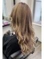 ブリーチ2回履歴**次回また明るくしたいけど一旦金髪をやめたいとのことで少し明るめのミルクティーに☆☆毛先は色落ちを考えて明るめのエクステと絶妙に色の違うエクステでハイライトをいれました!巻いてもストレートでも可愛いスタイルです(* ^^ *)