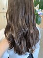ロングの重めのスタイルです。毛先に厚みがあり巻いた時のボリュームがかわいいです♪カラーはナチュラルなショコラベージュ!明るすぎないカラーで透明感もあります。
