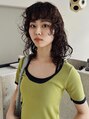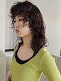 レイヤーのバランス、フォルムに合わせて不規則にロッドを配列して、プレイフルなパーマに。外人のくせ毛のようなラフな毛先の動きを、スライドカットで細かく繊細に作っていく。