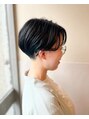 スタイリッシュな刈り上げショートヘア。インナーカラーはブルー系で個性的に、表面は自然な黒髪で地毛を活かして。