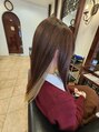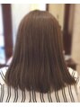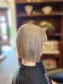 ワンブリーチして、彩度高めのヘルシーオレンジをオン。重めのボブで安定感のあるシルエットに。髪色でインパクトを与えて韓国風ボブ!
