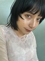 顔周りにレイヤーをしっかりいれたミニウルフスタイルカラーはブルーブラックでモードな印象に○