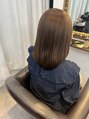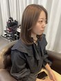 赤みのない柔らかいベージュ軽くレイヤーを入れてまとまりやすく内に入るように前髪は流れるように頬骨に当たる長さが更に小顔に見せてくれます!