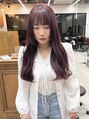 肌を明るく見せてくれる暖色カラー♪ブリーチなしでもまろやかな色味にラベンダーを混ぜてるので深みのあるピンクラベンダー!顔まわりはぷつっと姫カットにして少し個性をプラス◎お顔のバランスを見て似合う長さでカットしてます!