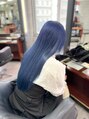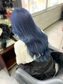 リタッチをして更に毛先の残留も軽くブリーチでとってその後ネイビーブルーを入れてエクステ60枚で長さだし♪
