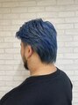 ブリーチ後にオンカラーツーブロックスタイルメンズ/ブリーチ/ブルー/ブルーカラー/ツーブロック/刈り上げ/カラー/イルミナカラー[駒込駅/駒込/白髪染め/髪質改善/ハイライト/縮毛矯正/メンズ]