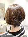 コントラストに細めにハイライトが入った前下がりショート。女性らしい丸みのある大人女性に人気のスタイルです◎