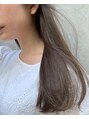 赤み・オレンジ味を消したベージュカラー。[シークレットハイライト]を入れて透明感UP!明るすぎず、暗すぎない柔らかいカラーに、レイヤーは入れない重めのヘアスタイルとの相性が◎