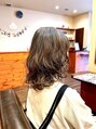 ミディアムのウェーブパーマです。柔らかいカールの重なりと、軽やかさがマッチしてて、とってもカワイイですね。伸ばし途中に最適です。