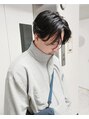 センターパートのカットベースに緩くニュアンスパーマをかけた大人メンズヘア。