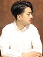 耳周り、襟足をスッキリ短くしたツーブロックショートスタイル。前髪は七三分けで上げて横に流せる様に、トップは高さが出る様に長めでレイヤーを入れ全体的に緩めにパーマをかけて立体感を出しています。