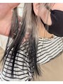 表面は中明度のミルクティー、インナーはホワイトをベースに中間から毛先にかけてブラックに◎ ブリーチ2回から作るデザインカラー