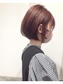 短くスッキリなラインのボブに、軽やかに見えるように少しショートの部分を。ショートまで短く見える様にはしたくないけど、軽い感じには見せたい方にオススメな可愛いショートです。カラーはピンクとラベンダーを混ぜた暖色系。可愛いスタイルに合います。