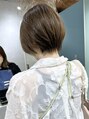 サイドはリップラインで襟足は首にそう柔らかい質感にしています。コンパクトで丸みとくびれのバランスがポイント!カラーはくすみのあるベージュカラーに。石田指名をクリックしご予約お待ちいたしております。