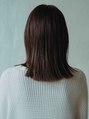 毛先がぱつっとなるようにカットしている切りっぱなし ミディアムスタイルです!前髪は重たくならないようにシースルーバングで顔周りを軽い印象になるようにしています。カラーは今流行ってる透明感のあるブラウンで染めています。