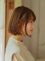 丸みを出した前上がりボブスタイルです。前上がりになっていることで、前下がりと比べてクールな印象より可愛らしく柔らかい雰囲気を演出することができます。また、カラーで数トーン明るめのブラウンにすることによって、華やかになり垢抜けた印象が出ます。
