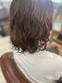 髪の毛の量が多いので、内側を軽くして表面は質感重視パーマをして下ろせるように