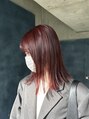 レッドカラー暖色カラーブリーチなしダブルカラー切りっぱなし/ホットペッパービューティー