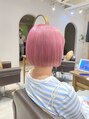 薄めピンクカラー/ブリーチカラーボブ/あごラインボブ/短めボブ