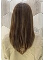 白髪がまばらにあるお客様ですが、白髪染めはしていません!全体的にブリーチのハイライトを入れて立体感を出しつつ、透明感のあるカラーに仕上げました◎