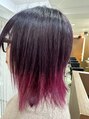 毛先だけグラデーションでブリーチしてあったところに、根元からピンクバイオレット系のカラーで染めました♪