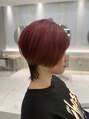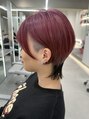 カシスピンクカラーと裾はブラックでウルフの段差を生活かした個性派カラー。
