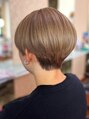 大人かわいい前下がりのショートボブはシャープに切ったライン、襟足をしめてスッキリ見せたりと、メリハリを効かせて絶妙なバランスに!ハイトーンカラーはシークレットハイライトで束感、質感をプラスしてくすみカラーのミルクティベージュを!