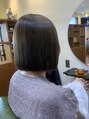 外ハネ切りっぱなしボブ×カーキカラー×ブリーチなしカラー