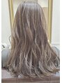 ブリーチを使い、全体的に細かなハイライトとグラデーションを施し、柔らかいベージュアッシュを被せて艶髪に。