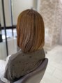 セミロングのスタイルをオレンジブラウンカラーに仕上げています。