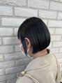 ミニボブとインナーカラーを組み合わせた相性抜群スタイルです!インナーカラーにネイビーブルーをいれることで長持ち&大人っぽい可愛さをプラスします♪特殊カラーもご相談ください。