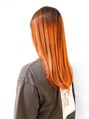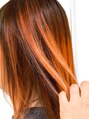 根元とインナーを暗めのベージュにまとめオレンジのカラーを入れました。前回ブリーチをしているのでかなり明るめのオレンジが入りました。