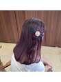 ピンク系ハイトーンカラー。ヘアアクセサリーをつけて可愛くアレンジ。ヘアカラーがかわいいとアクセサリーもつけたくなっちゃいますね。韓国風/韓国/縮毛矯正/髪質改善/メンズ/メンズパーマ/リボン/ヘアアクセサリー/静岡/藤枝/藤枝市/藤枝美容院/ピンク/