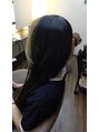 顔まわりの前髪をグレージュのカラーにして、それ以外をブルーブラックのカラーにして、メリハリをつけています☆