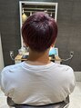 一度ブリーチをしてそこからオンカラーでワインレッドにしています。 色落ちはピンクになるように配合しています