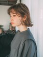 ハイトーンのミディアムロブスタイルです。切りっぱなしラインが外ハネにしたり内巻きにしても可愛く仕上がるスタイルです☆全体に大きなウエーブをつけて無造作にスタイリングするととっても可愛いです☆スタイリング剤はオイルでさらっと仕上げました。