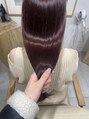 ブリーチなしred パープルも少し混ぜて強すぎない赤にしてます^^髪質改善カラーでより柔らかい質感に!毛先をワンカールに巻いて表面の艶が際立つように巻いてます!軽めのオイルをしっかりめにつけて室内でもうるうるに見えるように仕上げてます!