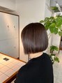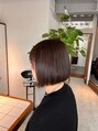 前下がりボブ細かいハイライトオンカラーでナチュラルに立体感を出すことで重すぎないボブに見えます