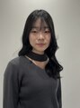 ブラックブルーカラー顔周りにレイヤーを入れてくびれ巻きにして韓国風スタイルに