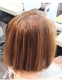 アプリコットオレンジ白髪ぼかしハイライトハイトーン結べるボブ/ホットペッパービューティー