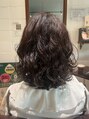毛先に残ったパーマを活かしたミディアムスタイル(^^)黄色っぽく抜けてきにくいラベンダーブラウンカラーもオススメです♪