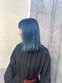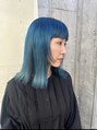 ワンレングスで楽しむハイトーンスタイルターコイズカラーと顔まわりのポイントカットが相性バツグンです
