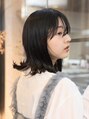 長めバング/透け感/黒髪/外ハネ/ウェットヘア/センター北