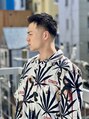 アンダーはスキンフェード、フロントを立ち上げやすいように短く切り込んでいます。