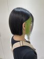 イヤリングカラー/蛍光/アップル/グリーン/切りっぱなしボブ/ホットペッパービューティー