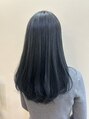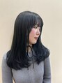 全体にフワッと入ったレイヤーと透け感あるネイビーの組み合わせがかわいい今っぽさ抜群のヘアスタイル。カラーは光が当たった時に透明感と色を感じられるダークトーンの仕上がりとなっています。室内で見るのブルーブラックぽいです◎