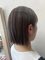 あえてブツ切りのボブでカットしそのパツンとしたラインをぼかさないようにカットしました^_^カラーは白髪ぼかしハイライトを筋感がたっぷりでるように!ベージュ系カラーで柔らかく見えるように(^^)※酸性ストレート履歴アリ